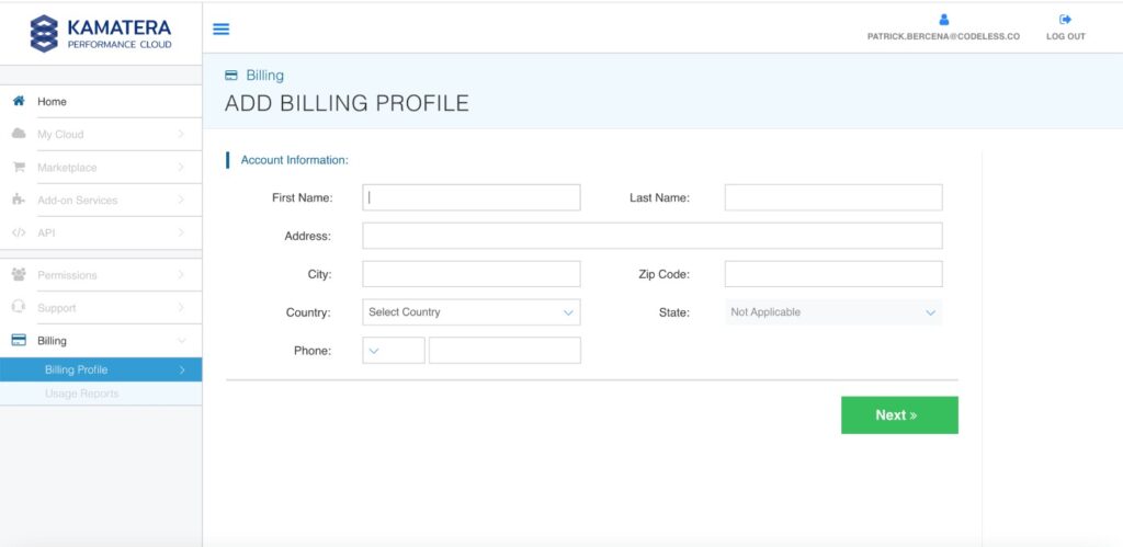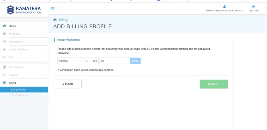 Sharing Some Basics: After the confirmation you should share your name, company details, and phone number. It helps Kamatera support you better.